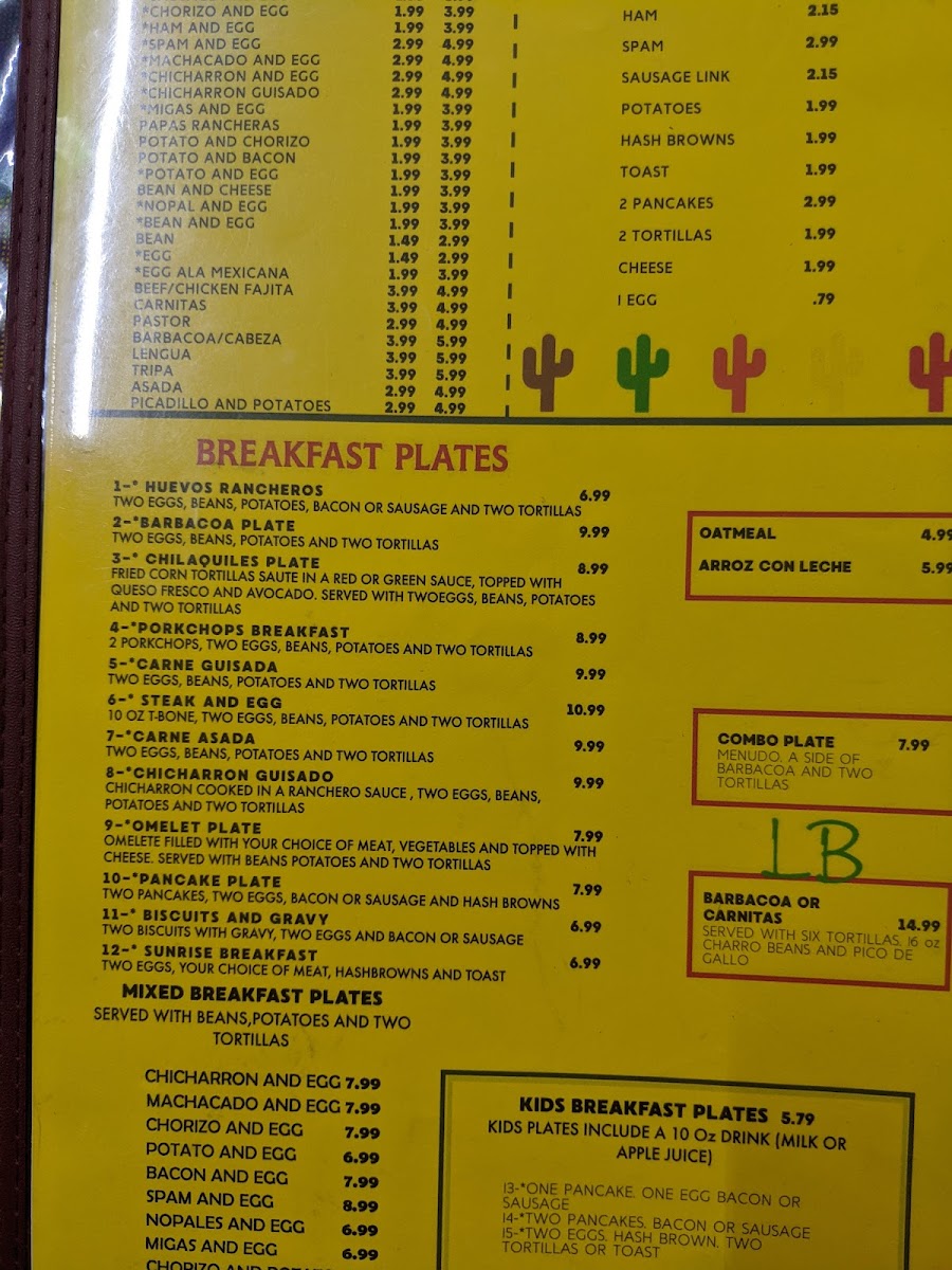 2 pork chops, 2 eggs, beans, potatoes, and 2 tortillas. consuming raw or undercooked meat, poultry, eggs, shellfish or seafood may increase risk of food-borne illness 15% gratuity will be included in the ticket of parties of 6 or more.